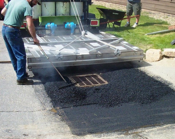 Дорожный инфракрасный нагреватель, установлен сзади и позволяет проводить ремонт дорожных повреждений, круглый год.